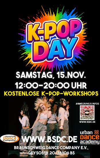 Der K-Pop Day findet in der Braunschweig Dance Company über alle Säle verteilt von 12:00 bis 18:30 statt.